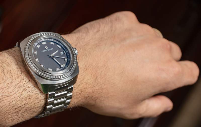 如果我必須對手表提出其他建議以便 Favre-Leuba 改進它,那么我會要求更復雜的手鏈展開器。也許我已經被帶有微調功能的手鏈的美妙世界寵壞了,但是一個簡單的蝴蝶式展開器根本不再給我留下深刻的印象。Raider Sea King 手鐲鏈節的尺寸意味著對于我的手腕(它會根據您的特定手腕解剖結構而有所不同),它要么太松要么太緊。我更喜歡貼身的手表,所以我把它的尺寸定在了它會收縮我手腕的地方,如果再小一點的話。為了測試手腕伸展時的舒適度,我在去香港旅行時隨身攜帶了 Raider Sea King。我特別想看看在炎熱潮濕的氣候中呆了幾個小時后會有什么感覺。出奇,手表沒有卡住我的手腕,我也沒有覺得不舒服。關鍵是如果手鐲確實有微調,那么假設手表暫時感覺很緊,我可以擴大一點。當然,如果您將這樣的手表帶入這樣的氣候,最明智的做法是取下表鏈并使用橡膠表帶(潮濕的天氣和皮革表帶不會很好地混合在一起)。