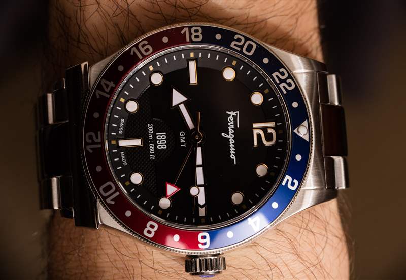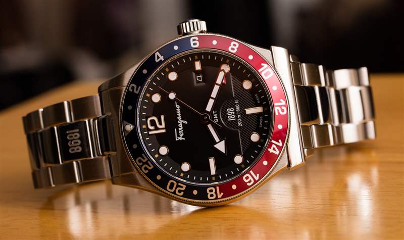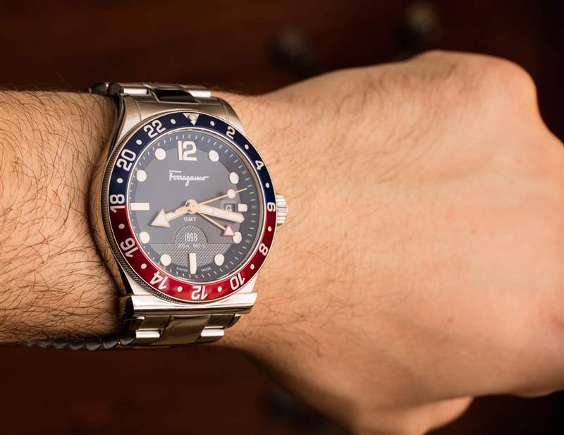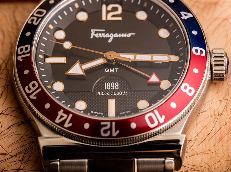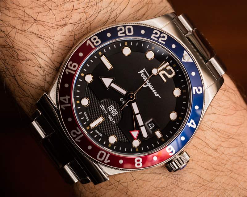 意大利時裝公司Salvatore Ferragamo與制造商和授權合作伙伴天美時集團合作生產腕表已有相當長一段時間。我最喜歡的 Ferragamo 手表繼續出現在他們長期的 F-80 運動手表系列中——但這是另一天的故事。今天,我來看看另一款菲拉格慕運動表:菲拉格慕1898,這是一款GMT風格的潛水表。