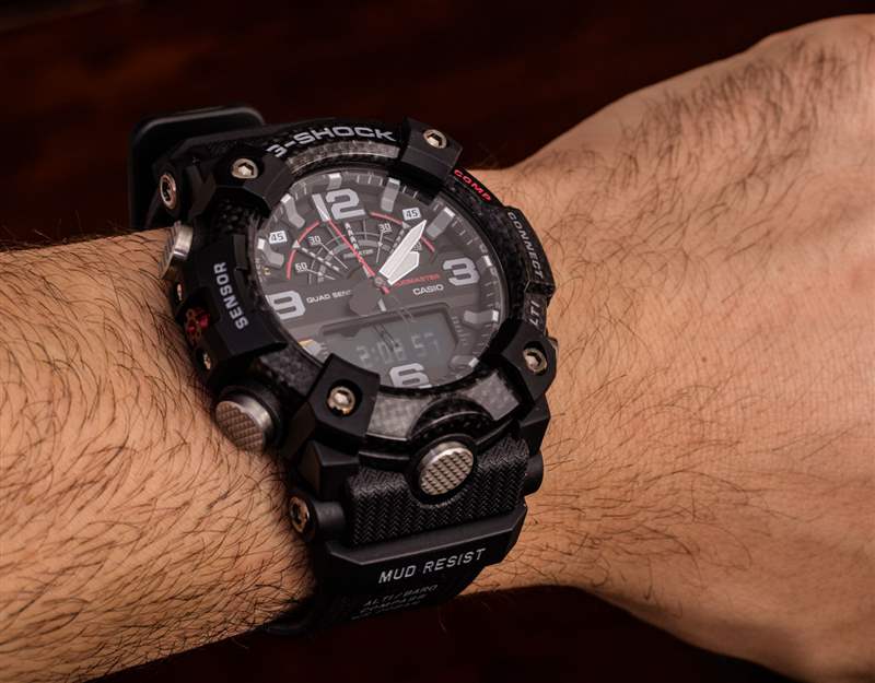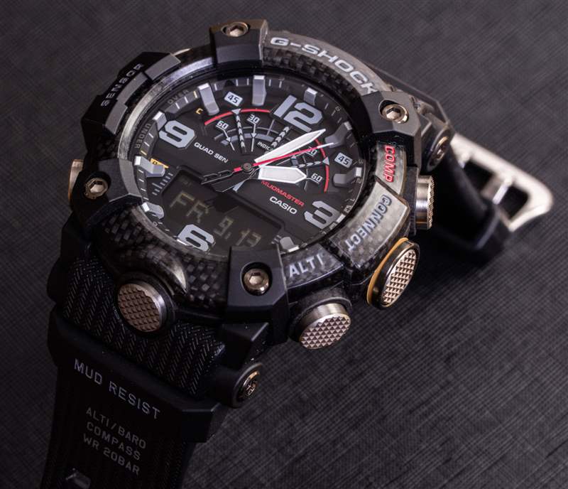 當您將 Mudmaster GG-B100 握在手中時,您會立即想開始使用它。這可能與表殼周圍的六個大型滾花表面推動器有關。Mudmaster 系列是關于水/灰塵/泥漿保護的,所有推桿的設計都考慮到了這一點。我真的很喜歡在機箱上有更多而不是更少的推動器,因為這意味著您通??梢愿斓孬@得功能。請注意,您可以將“已連接”的 G-Shock 手表連接到您的手機,如果您不想玩箱推芭蕾,您可以使用 G-Shock 應用程序調整手表上的設置。廣告訊息廣告信息結束