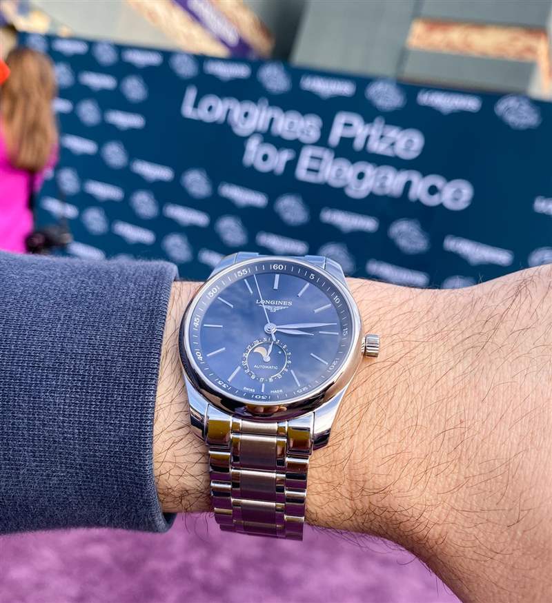 如前所述,浪琴表選擇了全新Master Collection Moonphase作為今年育馬者杯的官方腕表。該系列有大約 20 個不同的版本,因此了解 Master Collection Moonphase 的分割方式非常重要。首先,浪琴表決定生產 40 毫米和 42 毫米寬的手表。在這篇文章中,我穿著的是 40 毫米寬的版本。腕表可搭配表帶或配套的精鋼表鏈。然后是各種不同顏色的表盤(帶有不同顏色的指針),并帶有阿拉伯數字、索引或鉆石時標。我佩戴的特定 Master Collection Moonphase 具有藍色表盤、手鐲和索引小時標記作為參考 L2.909.4.92.6。