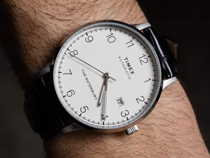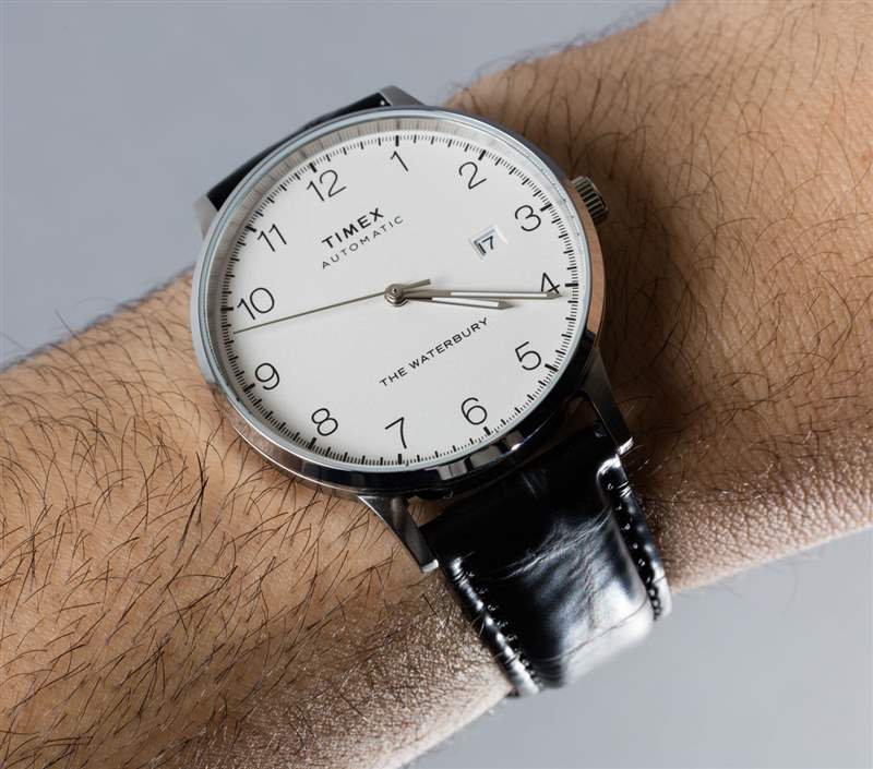 沃特伯里是 Timex 所在的康涅狄格州最初城市的名稱。此后,它把總部搬到了幾英里外,但品牌中的“沃特伯里”精神根深蒂固,這個品牌似乎適用于其更具“昨日風(fēng)采”的產(chǎn)品。沃特伯里經(jīng)典自動腕表看似簡單,但表盤的比例和易讀性非常好。它讀起來就像一個非常舒適的掛鐘——這是一件好事。阿拉伯小時數(shù)字環(huán)很吸引人,搭配大小合適的時針、分針和秒針。3點(diǎn)鐘附近的日期窗口稍微設(shè)置了一點(diǎn),不需要移除3點(diǎn)鐘的小時標(biāo)記。階梯式日期窗口是一種微妙而精致的觸感,提升了時計的整體外觀。廣告訊息廣告信息結(jié)束