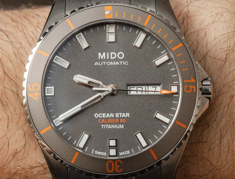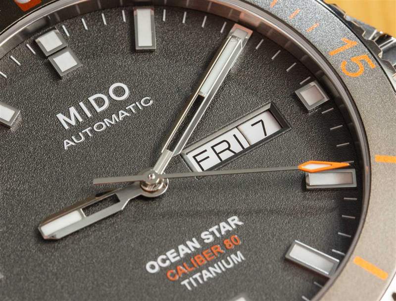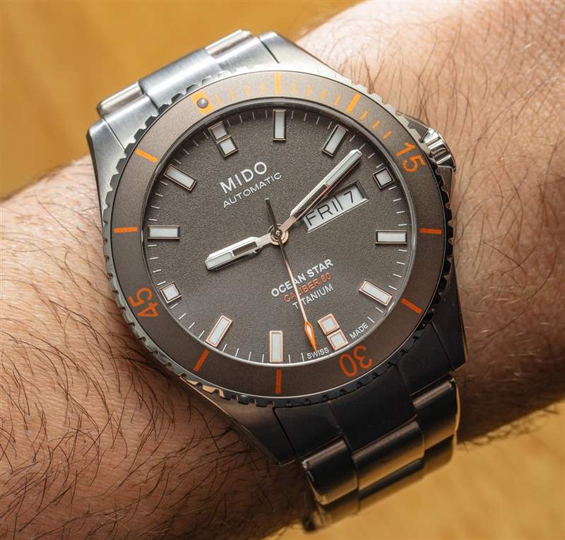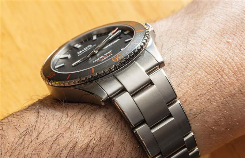 斯沃琪集團以極具競爭力的價格組裝出一款非常稱職的手表的能力來自于 Mido Ocean Star。外殼精加工和整體施工質量非常好。鈦金屬手表的這種修飾方式預計會比這款大約 1,000 美元產品的價格高出許多倍。這不僅是鈦金屬上的嚴格公差和良好的表面處理,而且表殼和表鏈上都具有大量拋光而不僅僅是拉絲表面的對比處理。Mido 實際上在匹配的鈦表鏈和橙色橡膠表帶選項中都提供了這種精確的海洋之星鈦。鈦手鏈的零售價僅為 40 美元!因此,我強烈建議您購買手鏈以便擁有它,