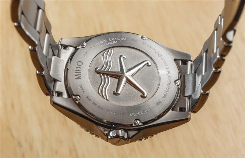 為什么是鈦而不是鋼?Mido 用鋼制造大多數版本的海洋之星——實際上,這在這個價位和這個市場上更有意義。這個參考 M026.430.44.061.00 和表帶上的參考 M026.430.47.061.00 版本是該品牌目前唯一生產的鈦金屬版本。這使它們成為最不常見和最獨特的地段。在我看來,它們也是最物有所值的,因為在這個價位上,有很多好的潛水表,但在全鈦表殼和相配的表鏈中幾乎沒有什么很棒的選擇。這款手表幾乎看起來像鋼,但重量減輕了 30% 左右,而且更加獨特。
