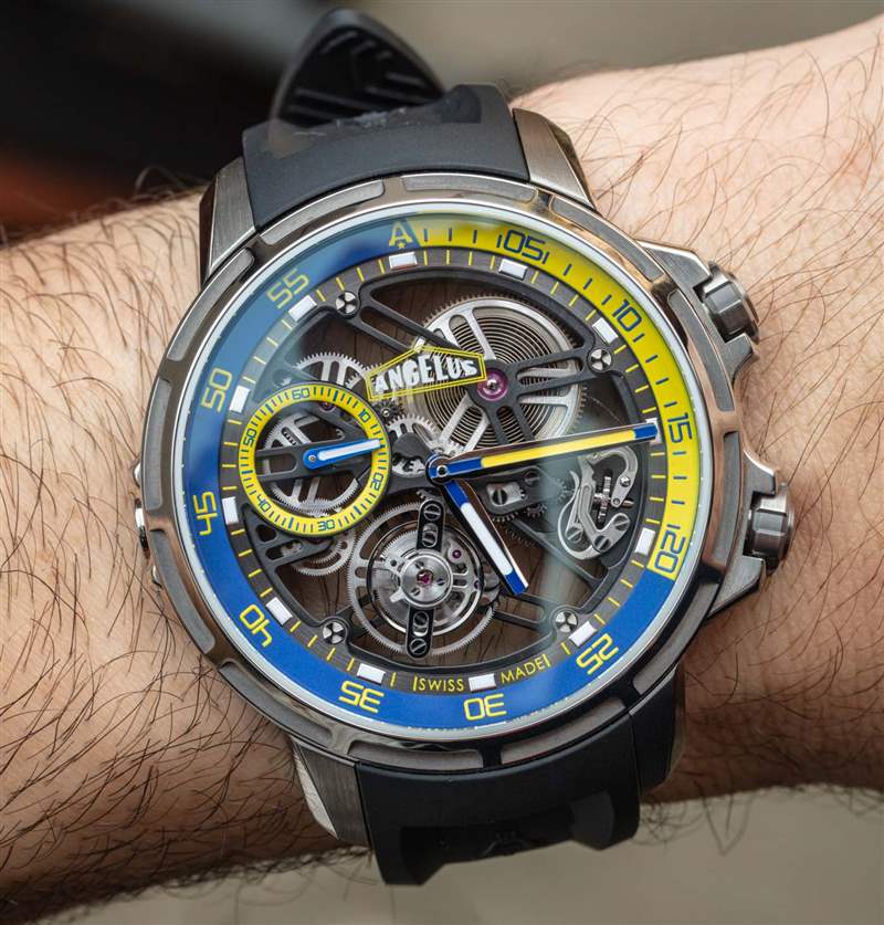 如果我可以對 U51 Tourbillon Diver 進行任何更改,那將有助于提高時針和分針的可見度。作為一款表盤上也有許多功能的鏤空手表,易讀性已經受到了攻擊。加上各種重疊的顏色和表面紋理,表盤一目了然。易讀性是運動手表的一個真正問題,但對于 U51 Tourbillon Diver 的可取性來說是一個小問題。這只表是如此有趣,如此有限,并且對于其他手表收藏家來說有著如此精彩的故事,我真的不能認為表盤是這款手表不會被社區充分慶祝的原因。然而,這確實意味著 Angelus 有能力為未來的版本調整設計,即使產品的創造者已經不在公司了。