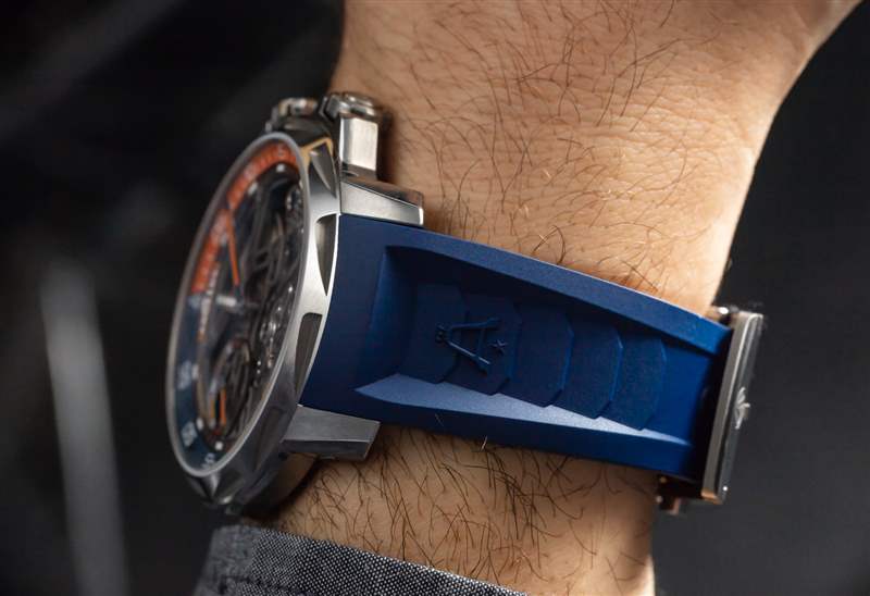 正如我上面提到的,Angelus U51 Tourbillon Diver 是由真正的手表愛好者和收藏家設計的。這意味著,至少,手表需要舒適且可穿戴——而且確實如此。在過去的日子里,像 Angelus U51(主題)這樣的東西不僅會貴得多,而且從人體工程學的角度來說,通常也無法佩戴。45 毫米寬的 5 級鈦金屬表殼在手腕上具有驚人的纖細感覺(約 12.5 毫米厚),并且可以緊緊地包裹在您的手臂上。搭配橡膠表帶,這款相對輕巧的腕式腕表佩戴起來令人愉悅,但佩戴者將不得不向許多旁觀者解釋他們選擇的腕表。廣告訊息廣告信息結束
