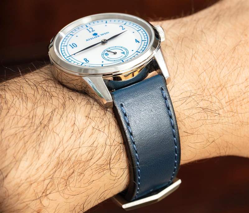 當您看到一個品牌也專注于良好的表帶體驗時,您就會知道它背后的人關心手表。Porcelain Odyssey 手表有一些表帶可供選擇,包括原廠藍色小牛皮和一條有趣的鮭魚皮表帶。搭扣也做得很好,據 Atelier Wen 說,它的靈感來自于寶塔結構的外觀。