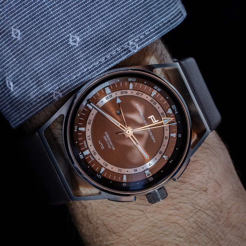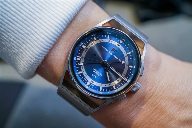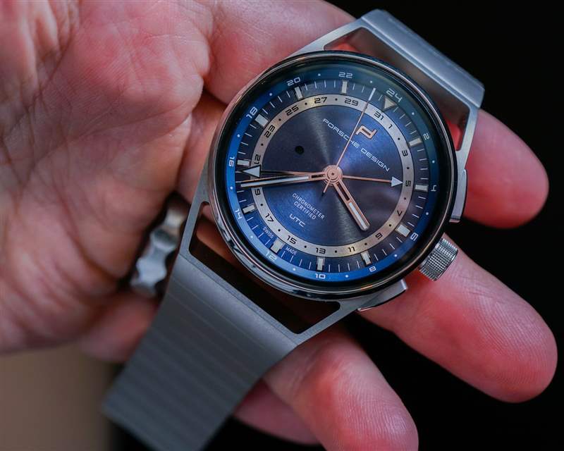 Porsche Design 現(xiàn)在的整體質量和結構確實令人印象深刻。1919 Globetimer UTC 的細節(jié)包括拋光鈦金屬表圈和按鈕上的一些角度。帶紋理的表冠既好看又抓握非常舒適。表盤既吸引人又清晰易讀,即使它不會立即讓您覺得新穎或與眾不同。我真正喜歡 1919 年 Globetimer UTC 的地方在于,你真的感覺到這是一款現(xiàn)代設計的產品,但它源于悠久的專業(yè)知識和風格傳統(tǒng),與當今最好的汽車的感覺非常相似。有點像保時捷汽車?保時捷設計公司愿意這樣想。