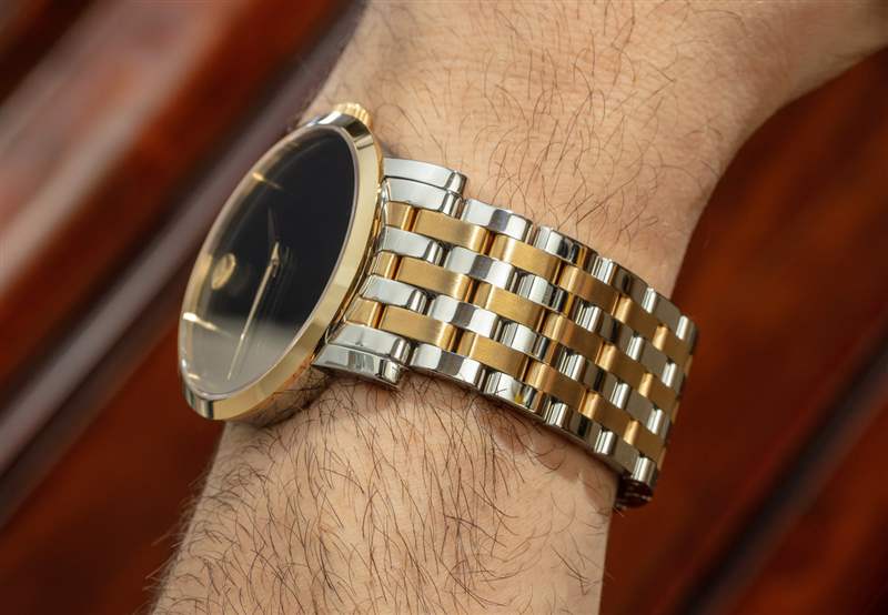佩戴這款基于自動機芯的 42 毫米寬雙色 Movado Red Label 手表,感覺就像是昨天的博物館表盤,我今天想佩戴。如果我嘗試將它與我通常喜歡的工具手表進行比較,那么我將很難評估這種手表的價值。我所做的是考慮博物館表盤的永恒美學價值,它的視覺吸引力繼續吸引我(可能還有其他人)。作為一款精致的時尚腕表、富有表現力的正裝腕表或男士珠寶腕表,摩凡陀博物館表盤的滿足方式幾乎與其他任何產品都不同。在“極簡主義”手表仍然非常流行的時代,也許是時候考慮一??款“原創”手表了。