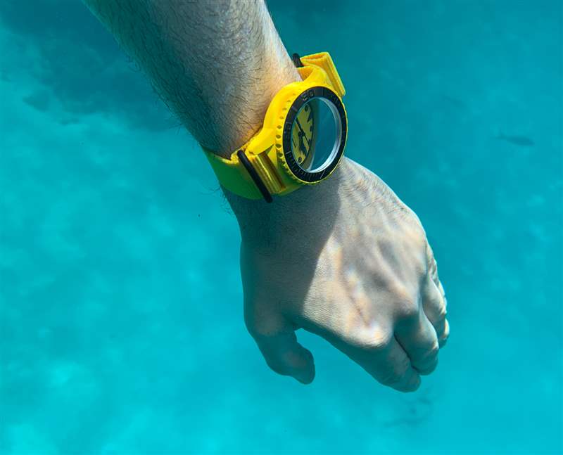在他們真正考慮弄濕手表之前,沒有人會考慮手表的耐用性。每次第一次將新鮮手表放入水中時(shí),都會有片刻的擔(dān)心。我以前有過手表起霧——但從來沒有泛濫過——所以這種擔(dān)心并非沒有道理。潛水表不僅僅是防水;它們還必須非常易于閱讀、耐用,并且——最重要的是——舒適。在定制的黑色和黃色 NATO 風(fēng)格表帶上,Undone Aqua 佩戴在手腕上非常舒適,這款 43.5 毫米寬的時(shí)計(jì)也恰好有一個(gè)重量驚人的表殼。廣告訊息廣告信息結(jié)束