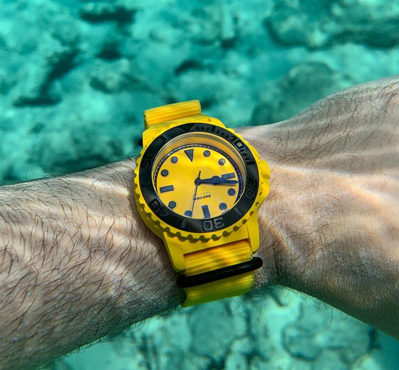 是的,我對 Undone Aqua BLK + YLW 有商業(yè)利益,但零售價(jià)僅為585 美元(利潤分成多種方式),我認(rèn)為我不需要在這里為不公平的利潤辯護(hù)。我的目標(biāo)是為像我這樣的鐘表愛好者帶來有趣、方便和有趣的腕表體驗(yàn)——在佩戴我的 Undone Aqua BLK + YLW 之后,我覺得我已經(jīng)能夠(至少對我自己)做到這一點(diǎn)。