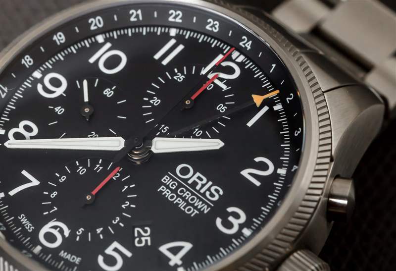 一些手表愛好者會抱怨表盤設計的元素如何相互重疊。從嚴格的“工具表角度”來看,表盤元素不應重疊是正確的——例如計時碼表子表盤上的時標。我不介意這一點,因為我實際上覺得,從美學的角度來看,它讓手表感覺更大更有趣。與計時碼表相比,它還強調了時間的顯示——這確實反映了當今大多數人如何使用這樣的手表。然而,如果您仔細觀察小表盤,您會發現您可以輕松地發現各種指標和指針。考慮到所有因素,即使從計時碼表的角度來看,Oris ProPilot Chronograph GMT 也比大多數計時碼表更清晰易讀。