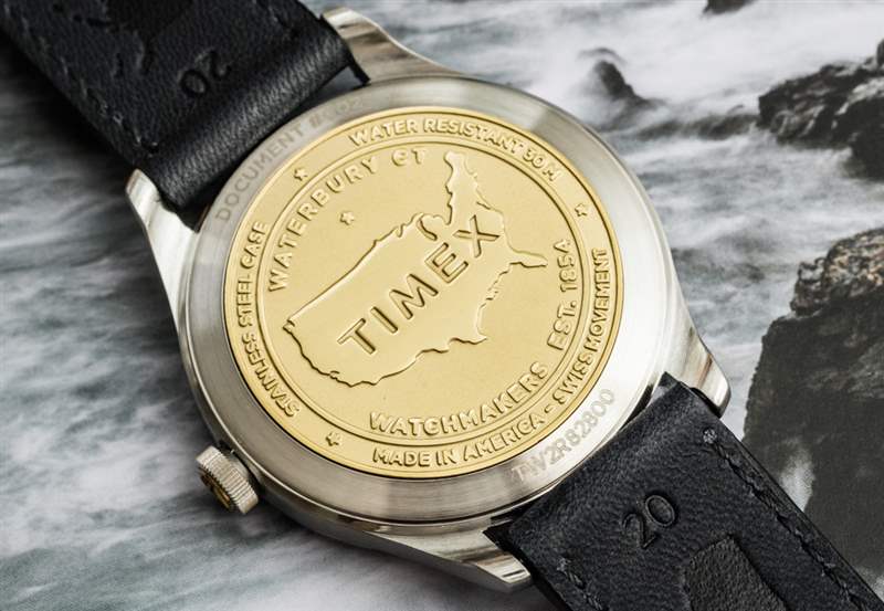 Timex 于 1854 年在康涅狄格州沃特伯里成立,這就是表盤上“W.1854”標簽的含義。當時(實際上仍然是今天)新英格蘭的這個地區(qū)是機械加工和制造的中心。腕表的背面以及表冠嵌件是這段歷史的見證。American Documents 手表的表底蓋和相配的黃銅表冠嵌件由黃銅制成,被稱為“美國文件硬幣”,是對 Timex 和沃特伯里地區(qū)歷史的直接認可。是的,當然,黃銅底蓋和表冠嵌件是在美國生產(chǎn)的。
