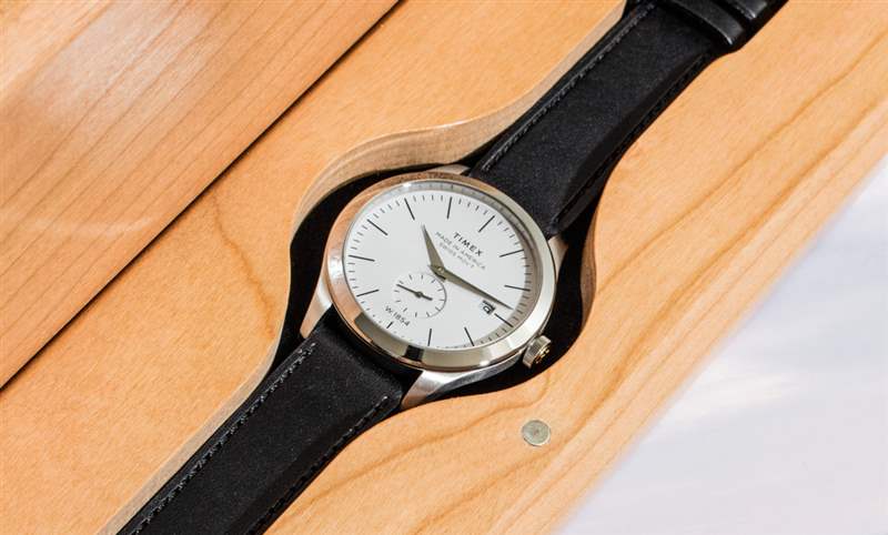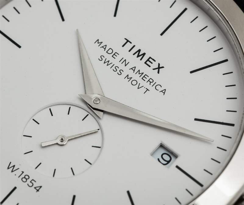 手表收藏家可能會發(fā)現(xiàn) American Documents 手表的設計很簡單,但其魅力在于該系列的重點和穩(wěn)重,以及零件的??美國原產(chǎn)地。在我看來,對于主流手表買家來說,American Documents 手表的設計效果很好。表盤本身有象牙白、黑色或深藍色,并印有簡單的棒狀時標。Timex 選擇了拋光的太妃針,它們很有吸引力,但反光度可能會低一些。Timex 在美國尋找好的指針供應商時遇到了相當大的問題,我知道優(yōu)化 American Documents 手表所有部件的質(zhì)量是一項持續(xù)的努力。表盤設計延續(xù)了副秒盤,以及位于 3 點鐘位置的日期窗口。