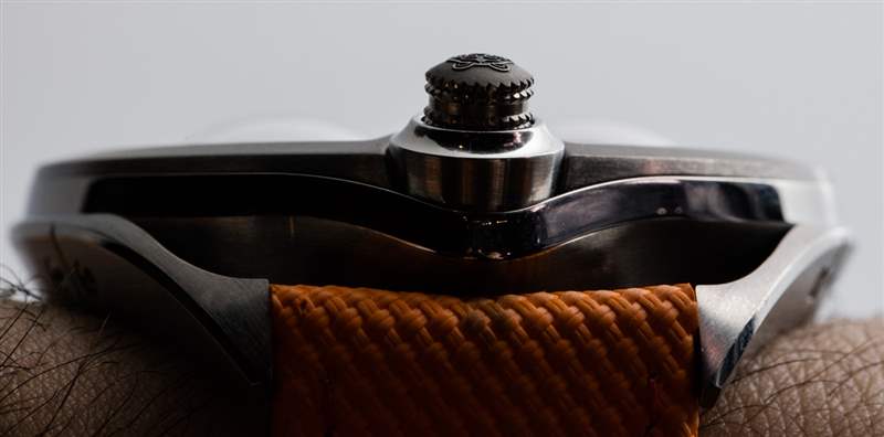 43 毫米寬的 DC 6 Solstice Half Hunter 表殼厚度為 12.6 毫米,防水深度達(dá) 30 米。在手腕上,它非常舒適,每個(gè)角度都被大衛(wèi)坎多明顯“過度設(shè)計(jì)”。我最喜歡的表殼設(shè)計(jì)元素是它的側(cè)面(當(dāng)然)也是手工拋光的,并且有一個(gè)“帶鉚釘?shù)谋P子”設(shè)計(jì),自從 Jorg Hysek 在 1990 年代為 Tiffany & Co. 做了類似的事情以來(lái),我一直很欣賞這種設(shè)計(jì),與 Streamerica 手表系列。廣告訊息廣告信息結(jié)束