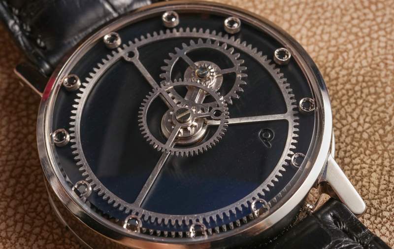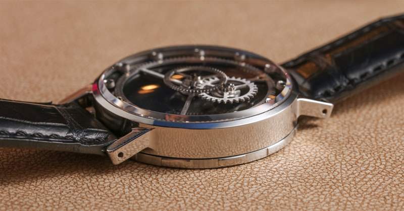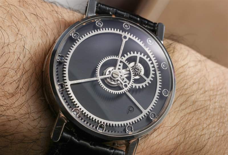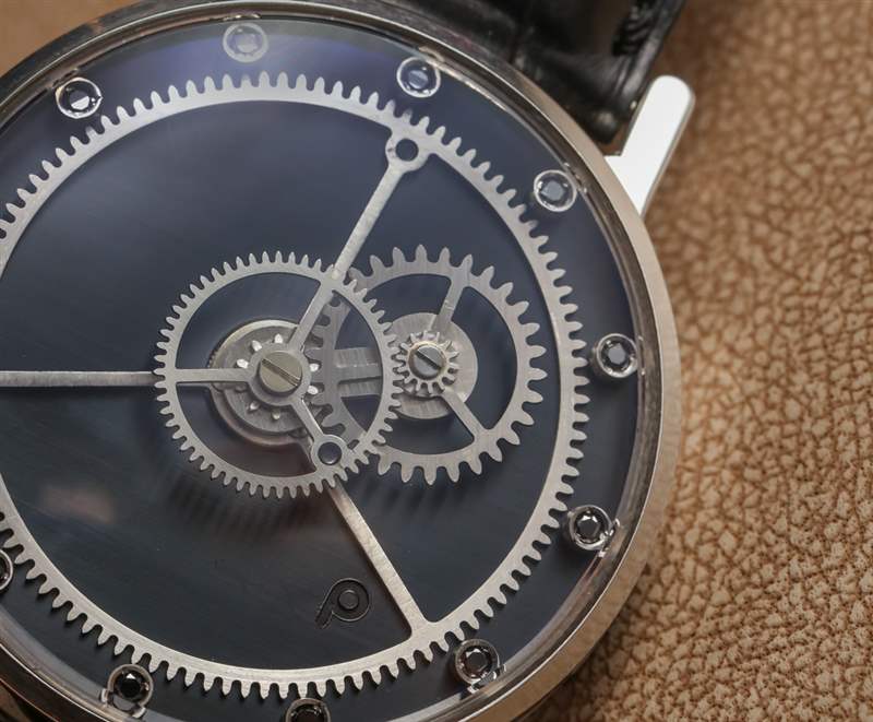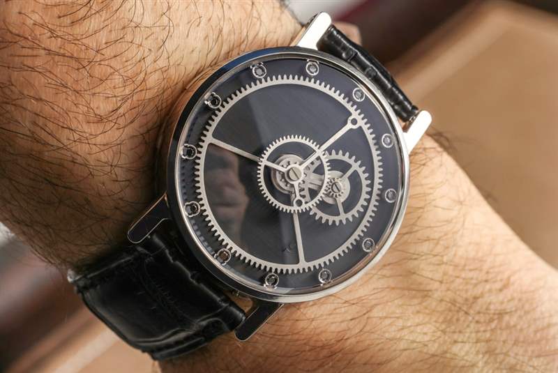 軌道表盤之所以有趣,有幾個(gè)原因。如果您遵循分別指示分鐘和小時(shí)的較大和較小齒輪中的孔(其中可能嵌入石頭)的路徑,則可以正常讀取時(shí)間。沒(méi)有秒指示器。齒輪自然需要始終在移動(dòng),因此它們會(huì)產(chǎn)生一個(gè)動(dòng)畫表盤,其外觀在一天中會(huì)發(fā)生變化。這種吸引力無(wú)法真正轉(zhuǎn)化為靜態(tài)攝影,因此您需要概念化享受定期更換的表盤是什么感覺(jué)。我過(guò)去戴過(guò)這樣的手表,至少可以說(shuō)很有趣。易讀性不在“工具表級(jí)別”,但也不錯(cuò),表盤外圍有一組時(shí)標(biāo),可幫助佩戴者閱讀時(shí)間。