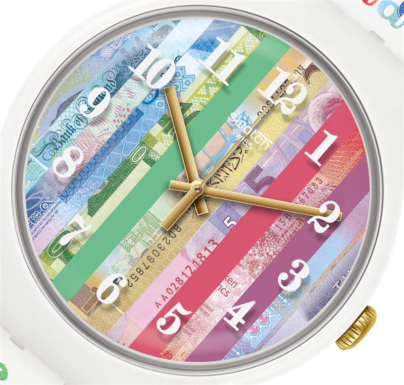 賈斯汀·史密斯 (Justine Smith) 的靈感來自于購買 COLOURSHIFT 手表的錢。實際上,更準確地說,她受到了貨幣的啟發。不僅是傳統的有形(“紙”)貨幣,還有更現代的貨幣形式,例如加密貨幣。結果是表盤上垂直線的彩色蒙太奇貨幣,以及代表加密貨幣區塊鏈骨干的彩色字母數字代碼。結果是一款色彩豐富的手表,可能會讓一些認為商業和政治出版物 175 周年更加保守的人感到驚訝。Swatch 可能認為 COLOURSHIFT 手表“男女皆宜”,但要由個人佩戴者來考慮顏色如何適合他們的外觀。我個人會盡力搖滾它,盡管作為一個喜歡穿鮮艷色彩的人。廣告訊息廣告信息結束