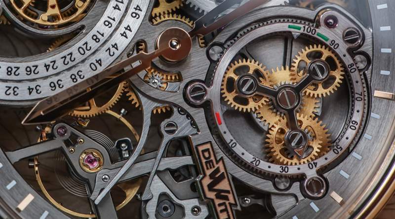 盡管始終具有明顯的技術(shù)優(yōu)勢,但許多 DeWitt 手表經(jīng)常存在一個或多個小的易讀性問題。在 Academia Skeleton 的情況下,指針很容易融入表盤,而且有點偏短。雙手遭受完全拋光以及自身有點骨架化的困擾。這不可避免地導(dǎo)致與設(shè)計師的分歧,即他們“想要這樣”。這是否意味著他們不希望手被強(qiáng)調(diào)?我認(rèn)為確實如此。我完全不同意豪華手表不需要專注于清晰地顯示時間的設(shè)計理念,因為人們購買這些產(chǎn)品是為了藝術(shù)目的。我提到這個反駁我的論點,因為這是我在與許多品牌私下討論與易讀性相關(guān)的問題時得到的典型回應(yīng)。他們一次又一次不同意我的觀點,而明確的證據(jù)表明清晰的手表是市場上銷售最廣泛的手表。再說一次,由于 DeWitt 的產(chǎn)量很低,我認(rèn)為他們在銷售 28 塊 Academia Skeleton 手表時應(yīng)該不會有太多麻煩。